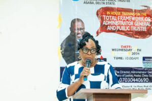 In her presentation, Mrs. Cynthia Eronmwon, a Director/ Zonal Coordinator in the Ministry, spoke on the management of estates by the Administrator-General and Public Trustee Department, outlining its roles and statutory responsibilities.